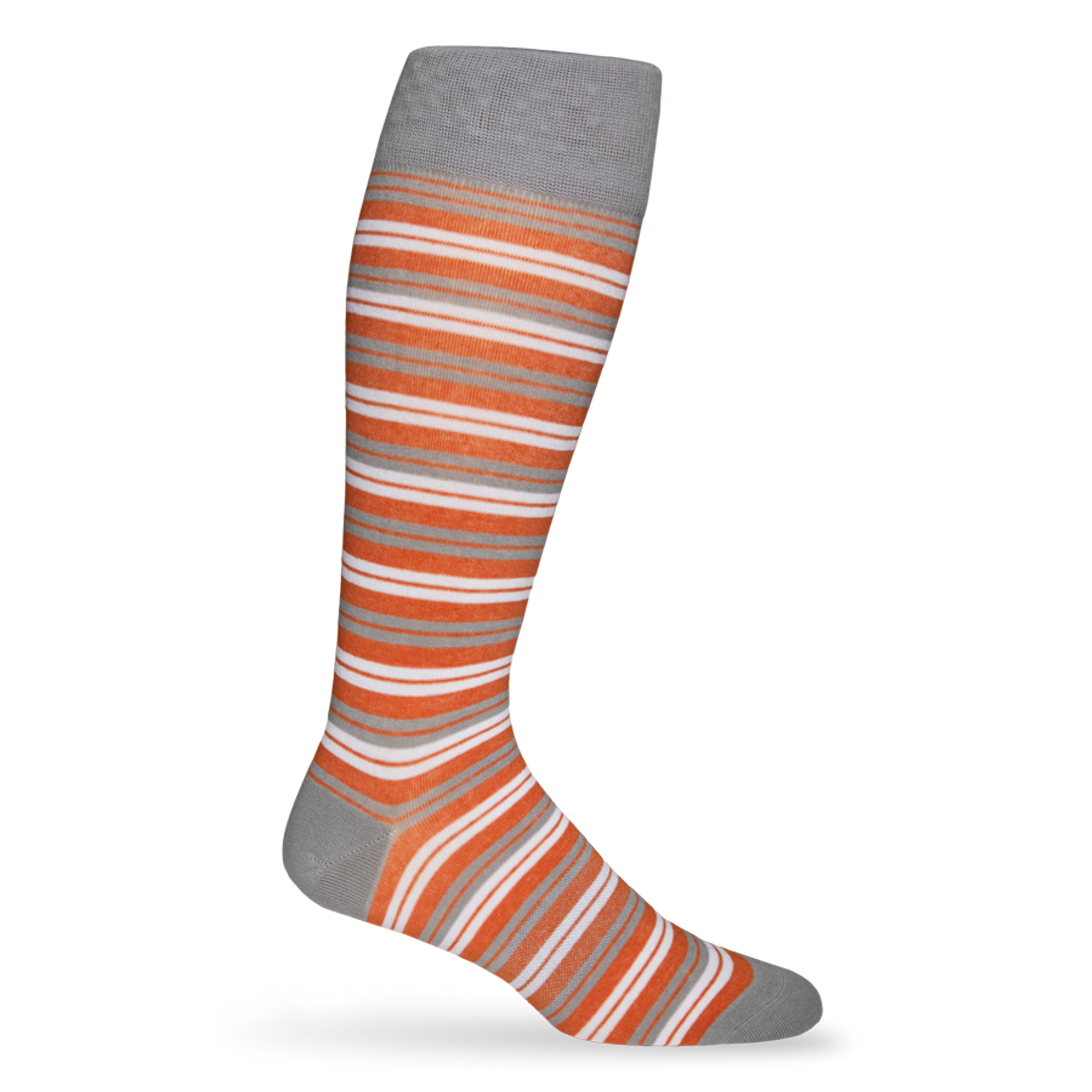 If you’ve been on the lookout for a classy addition to your game day gear featuring your favorite team colors then here it is! This pair of college socks features a delightful double striped design of Burnt Orange with gray and white accents.